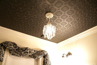 It makes the whole room pop. It looks like a tin ceiling, but it’s actually wallpaper that I painted a flat black.